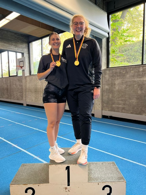 Hallen Steinstoss DM in Schwäbisch GmündVom 17.10 bis zum 19.10.2015 fanden in Schwäbisch Gmünd die diesjährigen Deutschen Hallenmeisterschaften statt.Wir können auf ein Wochenende zurück blicken welches unserer Abteilung zahlreiche Erfolge,persönliche Bestleistungen, erreichte Meilensteine, persönliches und gemeinsames Wachstum sowie ein Gefühl von Zusammenhalt und Teamstärke erleben und spüren lassen.Wir sind mit strahlenden Gesichtern und unbezahlbaren Erinnerungen wieder heimgefahren.Der erste Tag startete mit der männlichen Jugend B in der Klasse – 72kg hier holte sich Philip mit einer persönlichen Bestleistung von 7,93m die Bronzemedaille- Platz 3In der Gewichtsklasse plus 82 kg wurdeMagnus mit einer Leistung von 12,75m Deutscher Meister. Der Stein wiegt bei den Jungs 7,5 kgWeiter ging es mit der weiblichen Jugend B bis 55 kg. Solveig stieß den 5kg Stein auf eine Weite von 7,33m persönliche Bestleistung und Platz 2 – Deutsche Vizemeisterin.Dem mehr als guten Beispiel folgend darf sich auch Luisa mit einer Weite von 10,04m über Gold und Platz 1 in der Klasse der Frauen bis 58 kg freuen, und erreicht mit dieser persönlichen Bestleistung den 10m Meilenstein! Ebenfalls konnte Nadine die Klasse der Frauen plus 78 kg gewinnen, indem sie den Stein auf die beeindruckende Weite von 13,01m stieß.Zum krönenden Abschluss für diesen erfolgreichen ersten Tag reihte sich Daniel in der Klasse der Männer plus 98 kg mit einer Saisonbestleistung von 8,33m auf dem guten 8 Rang ein, es fehlten lediglich 7 cm zum 7. PLatzAn diesen spektakulären ersten Tag schließt sich ein nicht weniger spannender zweiter Wettkampftag an.Den Anfang machten die Schüler A bis 52 kg. Hier stieß Ron den 5 kg Stein 4 mal über die alte bestehende Deutsche Rekordmarke und erzielte schließlich die finale Weite von 11,32 m – Deutscher Rekord und persönliche Bestleistung sensationellIn der Klasse plus 65 kg ging sein Bruder Luk an den Start und wurde mit einer persönlichen Bestleistung von 9,54 m ebenfalls Deutscher Meister.Unser Sonntag bleibt golden! In der männlichen Jugend A – hier wiegt das Wettkampfgerät 10 kg – sicherte sich Philip in der Klasse bis 75 kg mit einer persönlichen Bestweite von 6,83 m den Deutschen Meistertitel. Magnus folgte in der Klasse plus 85 kg und stieß den Stein auf 11.03m – Platz 1 , persönliche Bestleistung und sein zweiter Titel an diesem Wochenende.Ein rundum gelungenes Wochenende.